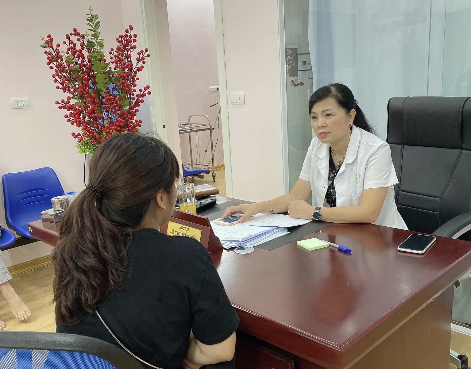 Ngoài công tác tại bệnh viện, bác sĩ Uyên còn thăm khám và điều trị tại phòng khám riêng: Phòng khám Tâm lý và Sức khỏe Tâm thần - BS CKII Lê Thị Tố Uyên, nơi cung cấp dịch vụ chăm sóc sức khỏe tinh thần chất lượng, tận tâm và chuyên nghiệp.